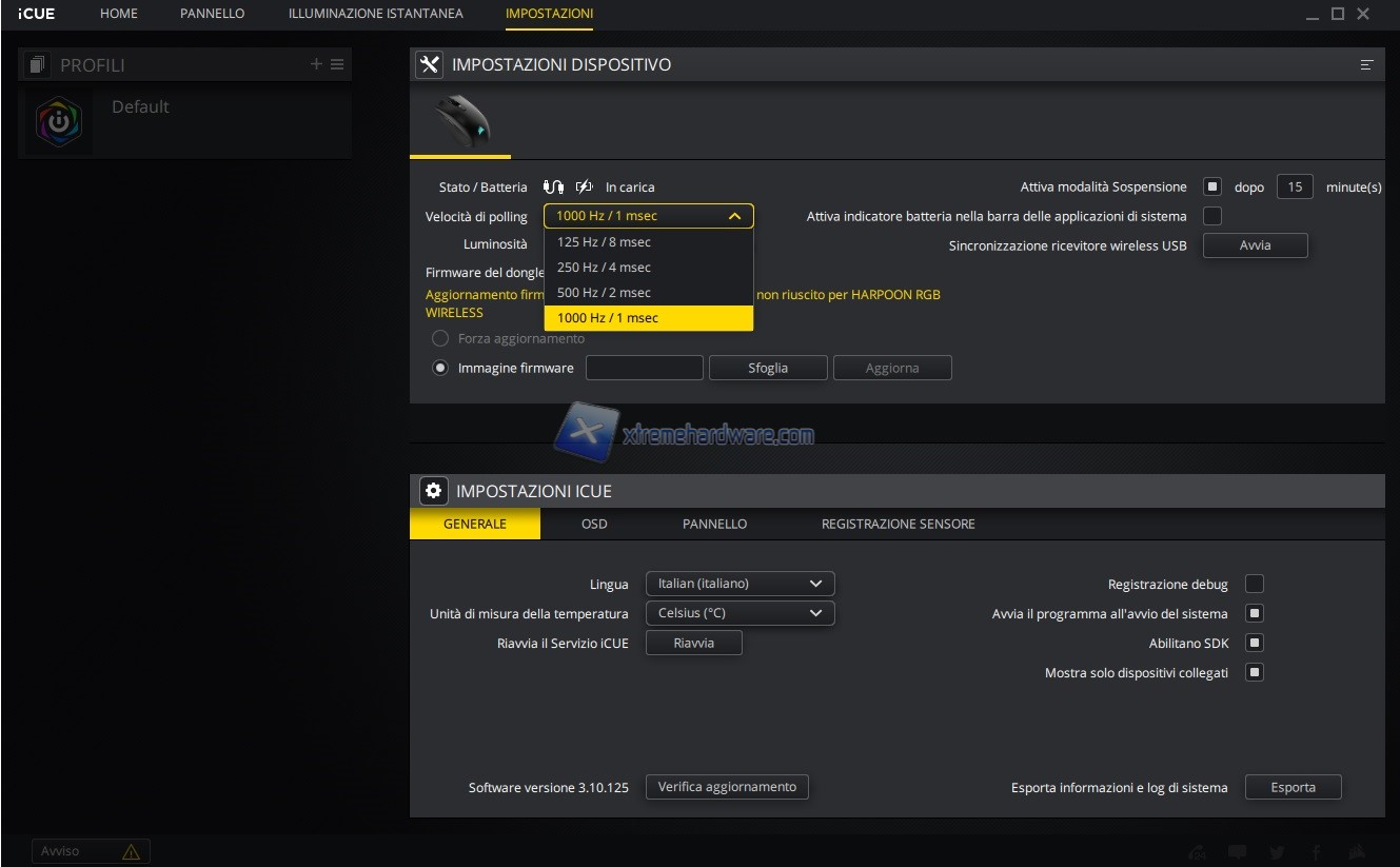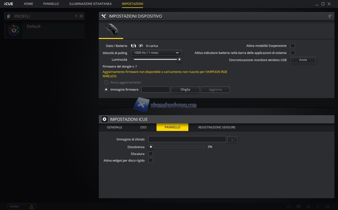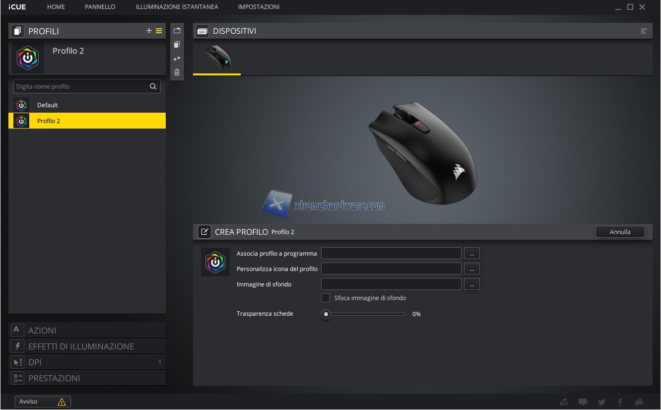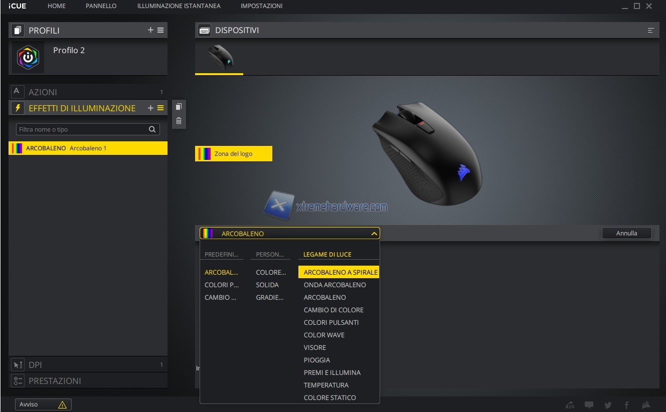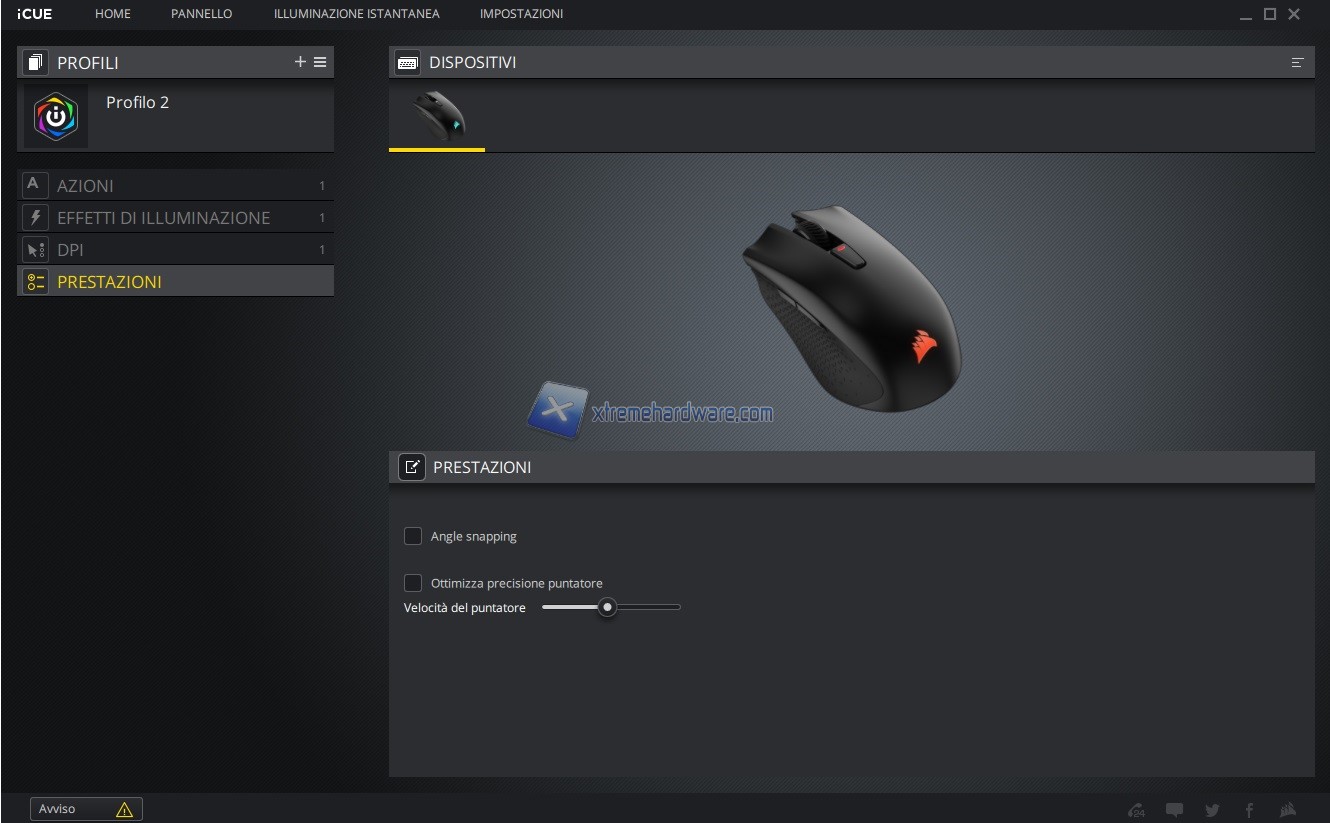 Si passa poi alla personalizzazione vera e propria della periferica in questo caso del mouse Corsair Harpoon RGB Wireless.