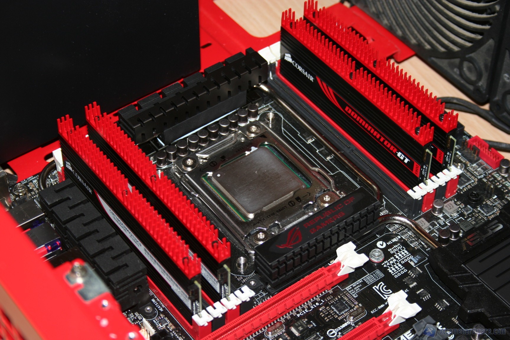 Fatto questo consigliamo l’installazione dei dischi rigidi, facendo attenzione a posizionarli in serie nella struttura predisposta. Fatto questo sarà necessario montare il lettore DVD: dovrete togliere le mascherine frontali e sostituirle con l’unità ottica, per poi riavvitare e serrare lateralmente. Fatto questo, si passerà all’installazione della scheda madre. Se si possiede un dissipatore Intel, tramite il solito sistema push-pin, sarà possibile installarlo successivamente, altrimenti se volete potete già procedere ad installare il backplate del dissipatore della CPU, facendo attenzione a stendere un sottile velo di pasta termica alla base della CPU stessa. In sostanza, se la vostra scheda madre non è mini-ITX, dovrete prima montare i distanziatori nei fori per il formato ATX, serrarli molto bene – consigliamo una pinza larga 1cm durante quest’operazione, su ogni cabinet – e poi apporre la scheda madre, serrandola con le viti fornite nella confezione. Se avete un dissipatore aftermarket potete utilizzare il foro posteriore, che è molto pratico e vi aiuterà non poco all’atto della procedura. Dopo aver montato il dissipatore sulla scheda madre, sarà necessario montare la scheda video, le RAM ed infine procedere all’assemblaggio dei cavi di connessione del cabinet alla scheda madre. Per fare un lavoro pulito consigliamo l’utilizzo delle fascette restringenti fornite in bundle. A titolo informativo riportiamo il cablaggio eseguito posteriormente, ma state certi che con una maggiore cura ed attenzione ai particolari il lavoro sarà ancora migliore. Terminata l’operazione vi consigliamo di connettere tutte le ventole che avete a disposizione. Ecco qui come si presenterà il case a lavoro terminato.